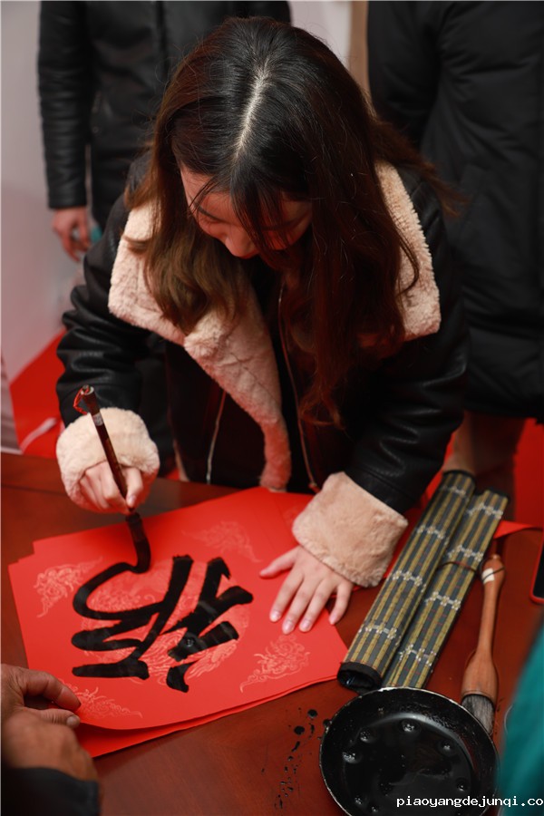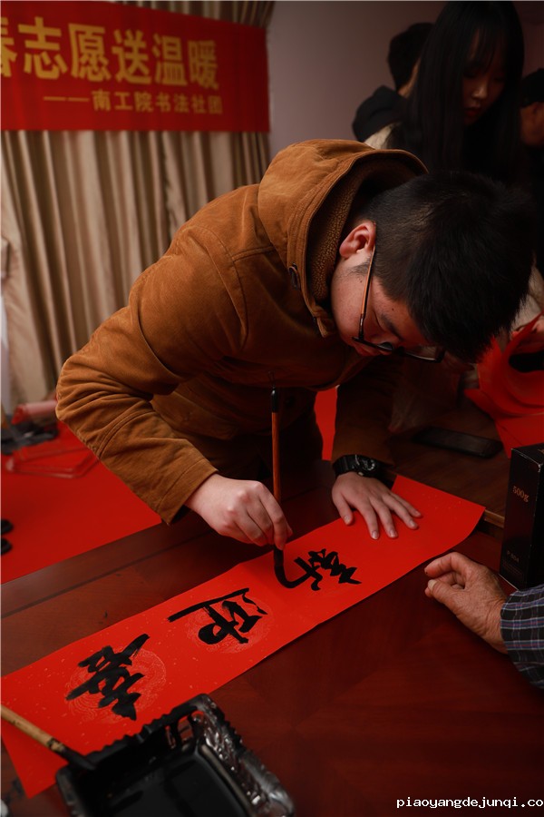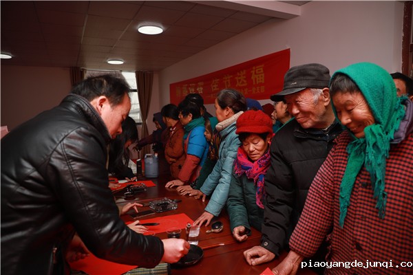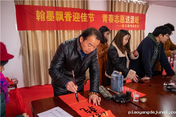 在近两个小时的时间里,老师、同学们为当地村民书写了近200幅春联和“福”字,传递了最诚挚的问候和最美好的新春祝福。鲜艳的红纸、飘香的翰墨、喜悦的脸庞、浓浓的情谊,增添了现场喜庆祥和的新春氛围。