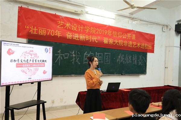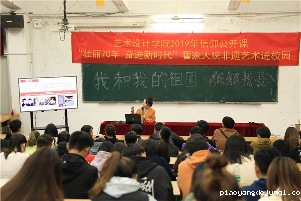 10月28日晚,艺术设计学院团总支特邀徐州翟家大院撕纸艺术非遗文化传承人翟天麟,为同学们带来了一堂主题为“壮丽七十年 奋进新时代”的信仰公开课。艺术设计学院200多位同学齐聚敬业楼阶梯教室,感受中国传统文化撕纸艺术的独到魅力。
