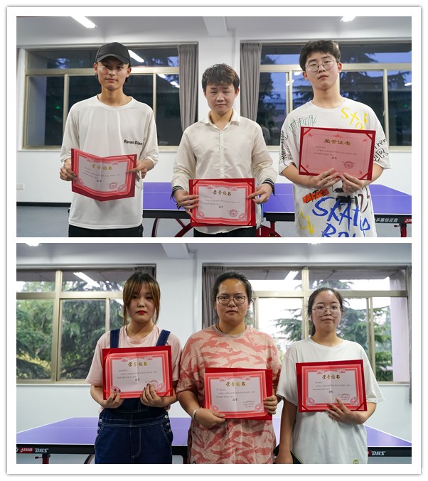 比赛采用淘汰制,三局两胜,分为男子单打和女子单打两项。现场气氛热烈、精彩纷呈,选手们积极拼搏,特别是不到最后一刻决不放弃的体育精神深深地感染了在场的每一个人,选手们赛出了水平、赛出了风格。经过两个多小时的角逐,视觉1911谢克华、视觉1911王振华、环艺1911徐振华三位同学分获男子组单打冠、亚、季军;视觉1813倪一菁、产艺1911谢谈佳、产艺1921杨柳分获女子组单打冠、亚、季军。