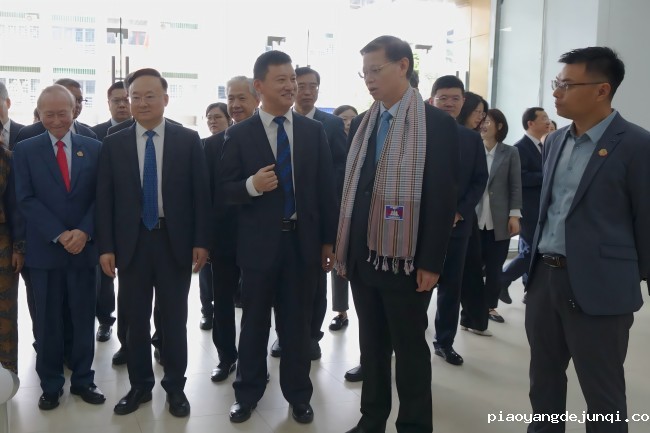 谢永华向汪文斌大使介绍柬华应用科技大学