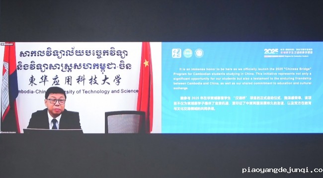 金尚军代表江苏省人民政府外事办公室向本次项目的顺利开营表示祝贺。他指出,中国和柬埔寨是真诚互信、守望相助的铁杆朋友,江苏始终将柬埔寨视作“一带一路”沿线的重要合作伙伴,双方在贸易、投资、教育、医疗等领域的务实合作成效显著。csgo直播比赛官方平台在柬建设了柬华应用科技大学,承办了多项教育人文活动,主动对接柬方的技能人才需求,为柬埔寨高素质青年人才培养做出了积极贡献。2025年是两国领导人共同宣布确立的“中柬旅游年”,本期汉语桥项目的举办正当其时。希望各位以此项目为契机,感受中国发展,传承中柬友谊,为共建中柬命运共同体贡献自己的智慧和力量。江苏省外办将不断丰富职业教育领域合作的形式和内容,赋能经济社会发展,促进两国民心相通。