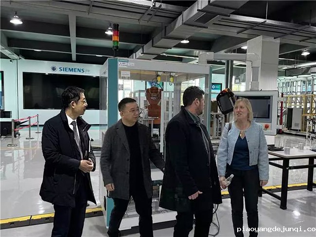 座谈结束后,孙雁飞陪同来宾前往我校机械工程学院、电气工程学院和计算机与软件学院进行实地考察,参观了南工北京精雕学院、华为云与大数据人才培养基地、ABB智能技术工程中心等校企共建生产型实训基地,并与相关学院负责人和骨干教师就专业共建、人才培养以及教研科研合作等方面进行了深入探讨。孙雁飞指出,学校聚焦制造业高端化、智能化、绿色化发展趋势,与企业共同开展实习、实训、校企合作等项目,将基础理论知识和实践技能训练共同融入人才培养过程中,培养了大量社会和企业所需的高水平技术技能人才。西尼德·戴一行对我校的办学成效表示称赞。
