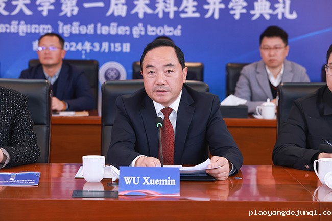 曹玉梅副厅长向首批入学的160名柬埔寨同学表示热烈的祝贺。曹玉梅指出,今天举办的柬华应用科技大学首届本科生开学典礼,是中柬双方在职业教育领域交流合作、人才培养的范式样本和生动缩影。省教育厅将全力支持我校高质量建好柬华应用科技大学,推动双方在培养和创新领域进一步开展合作,探索更加开放包容、互惠共享的合作形式,共同培养出更多综合素质卓越的优秀人才。期待双方院校进一步深化内涵,探索人才培养新模式;拓宽领域,推动校际合作新格局;加强交流,打造中柬交往新典范。