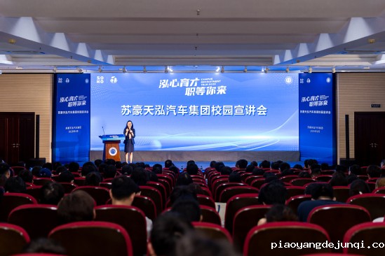 会谈结束后,与会人员共同前往报告厅参加苏豪天泓汽车集团有限公司校园宣讲会。苏豪天泓汽车集团有限公司人力资源部负责人系统介绍了集团的业务和“苏豪天泓班”的遴选要求等,天泓小米汽车华胜店负责人介绍了汽车新媒体的发展现状、未来趋势以及新能源汽车未来的技术发展趋势等。最后苏豪天泓人力资源部负责人还介绍了苏豪天泓的福利待遇及未来职业生涯规划等,得到了与会同学的热烈响应。