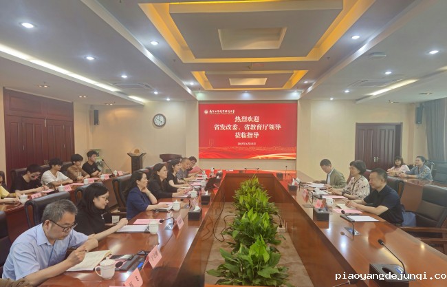 魏萍代表学校对调研组表示热烈欢迎,并感谢省发改委和省教育厅长期以来对学校工作的关心与支持。她介绍了学校历史沿革、国际合作交流情况,特别是学校新获批的中外合作办学机构英方的基本情况、中英合作办学机构的办学目标、合作模式、经费筹措与管理使用情况等。她表示,学校将持续引入国外优质高层次职业教育资源和先进的教育理念、管理经验,助力学校特色和优势学科的发展,培养国际化的师资队伍,更好推动学校的国际化办学工作,为教育高质量发展做出贡献。