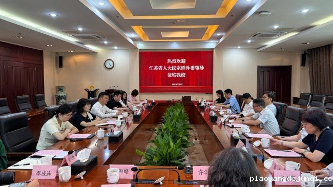 7月2日上午,江苏省人大民宗侨外委主任委员、分党组书记李国华,民宗侨外委副主任委员、常委会外事委主任、分党组副书记陈志红,民宗侨外委副主任委员、分党组副书记王华等一行12人来校调研。学校党委书记谢永华出席调研座谈会。机关与直属单位党委、国际合作与交流处相关同志参加了调研活动。