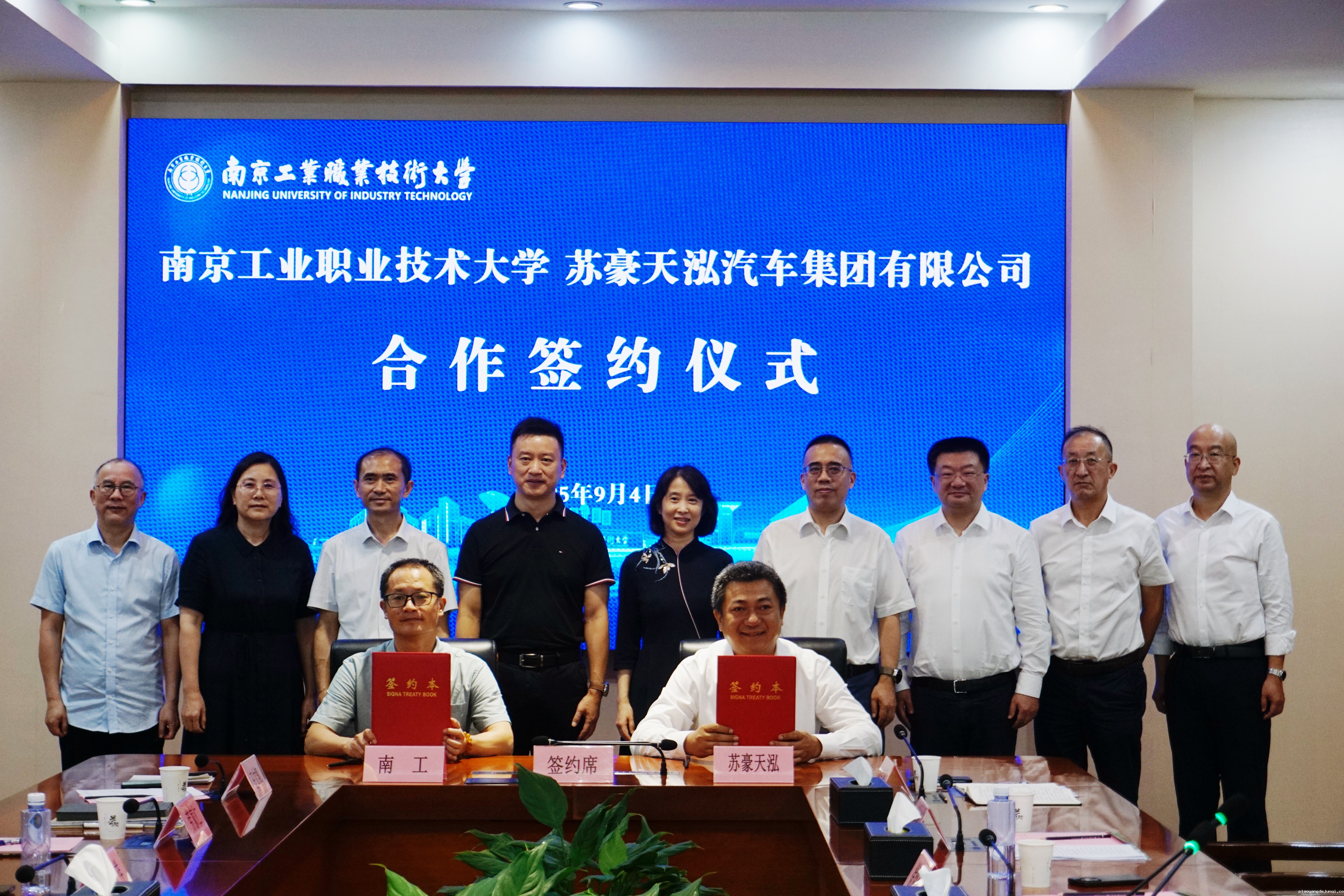 在双方主要领导的见证下,苏豪天泓汽车集团有限公司党委委员、副总经理杨孝勇与我校交通工程学院院长王文凯签署校企合作协议。