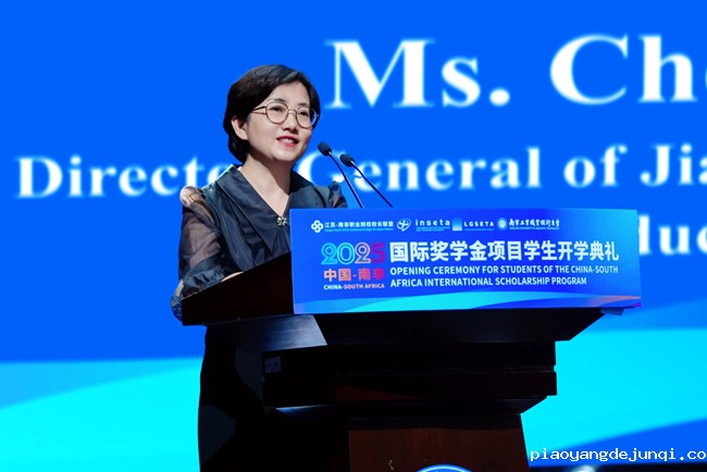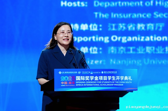 陈艳在仪式上致辞。她表示,江苏是经济大省、教育大省、文化大省,在过去五年,有来自182个国家超过16万人次的外国留学生在江苏学习,已成为外国留学生到中国留学的主要目标省份之一。她指出,2024年南工协办“江苏—非洲职业教育合作交流会”和“留学江苏教育展南非专场活动”取得良好成效,在此基础上,中南双方合作开展“中国-南非国际奖学金”项目,让更多的南非优秀学生有机会来苏学习,江苏省教育厅将一如既往地支持该项目,希望在大家的共同努力下,为构建中非命运共同体贡献更多的江苏教育力量。对新入学的南非学生,她提出三点建议:一是希望同学们尽快适应新的环境,珍惜学习时光,学好专业知识;二是希望同学们与中国师生广交朋友,多和家人朋友分享中国故事、江苏故事,成为增进中国与南非友谊的使者;三是希望参与项目的江苏院校将这个项目办实办好,打造成为中国与南非国际教育交流的品牌项目。