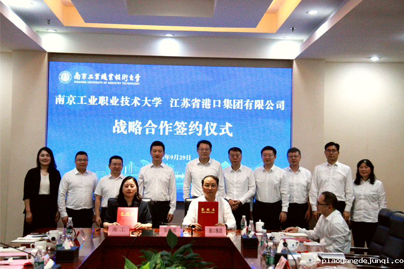9月29日上午,我校与江苏省港口集团有限公司校企合作签约仪式在仙林校区隆重举行。江苏省港口集团有限公司党委书记、董事长陈明,副总经理、党委委员谭瑞兵,党委委员、办公室主任张旭,南京港(集团)有限公司党委书记钮建平,江苏省港口集团信息科技有限公司执行董事、总经理刘海燕,南京港机重工制造有限公司总经理张传平等企业领导,我校党委书记谢永华,党委常委、副校长魏萍等出席仪式。