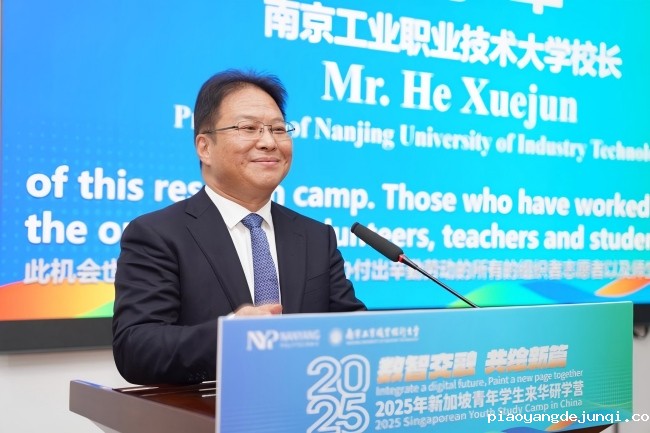 何学军在致辞中代表学校对远道而来的新加坡师生表示热烈欢迎。他指出,本次研学营不仅是一场科技文化体验之旅,更是一次心灵与思想的交流,为两国青年互学互鉴、共话未来搭建了桥梁。他表示,希望通过此次研学营,新加坡师生能走进校园与企业,深入了解中国科技创新与文化发展的成就,感受一个充满活力、勇于创新的中国,在交流中收获友谊与启发,共同谱写中新合作新篇章。