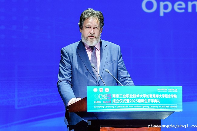 谢永华在致辞中表示,作为职教本科探索者,学校秉持开放办学理念,此次携手在应用型教育、产学研及工程技术领域享誉的伦敦南岸大学共建联合学院,既是响应国家号召的战略选择,也是学校国际化办学进程中的重要里程碑。学校作为全国首批本科层次职业教育试点院校,始终秉持开放、创新、合作的理念,先后创办中赞职业技术学院南工机电学院、全国首家职业教育孔子学院、“中文+职业技能”国际推广基地及柬华应用科技大学,吸引来自53个国家的留学生,形成多元开放格局。他指出,与伦敦南岸大学的合作,是理念契合、优势互补的成果,双方将汇聚优质教育资源,打造中外合作办学典范。谢永华要求首届新生,要胸怀理想、脚踏实地,扎根中华文化、拥抱世界文明,在中英文化交融的沃土上成长为兼具专业素养与国际视野的时代新人。