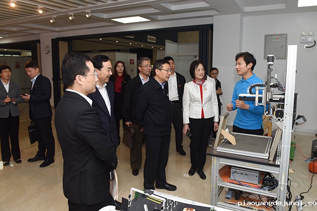 徐书记一行学习参观了省党员教育实境课堂——黄炎培职业教育思想展览馆,全面了解了我校创始人黄炎培先生生平及其职业教育思想。参观了大学生创新创业作品展、工程技术实训中心,实地了解我校大学生的学习情况。深入学生食堂,检查了校园食品安全情况。