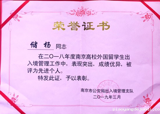 我校国际教育学院储杨老师荣获2018年度南京高校外国留学生出入境管理工作先进个人称号,这也是我校首次获得此类奖项。
