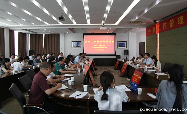 为进一步贯彻落实省委、省政府办公厅《关于加强和改进全省教学科研人员因公临时出国管理的指导意见》文件精神,加强因公出国管理工作,6月24日下午,我校在行政楼辅二楼举办外事管理工作专题讲座,江苏省人民政府外事办公室刘俊生处长应邀作专题讲座。讲座由校长谢永华主持。国际合作与交流处、国际教育学院全体人员、各二级学院分管国际化工作负责人、办公室主任、外事秘书、近期出访的团组负责人参加了此次讲座。