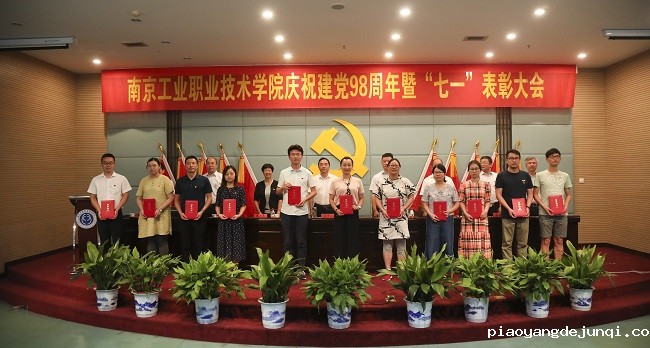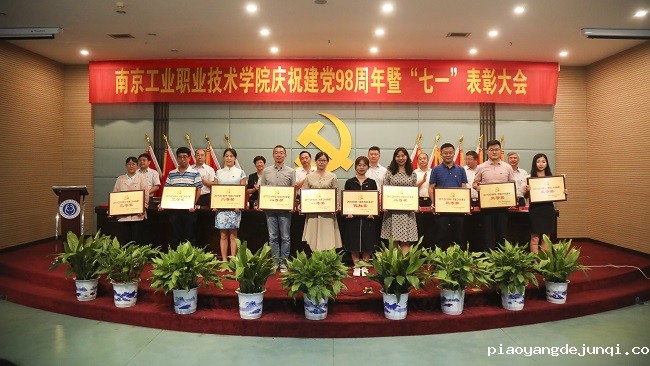 会议表彰了江苏省高校和学校先进基层党组织、优秀共产党员、优秀党务工作者。计算机与软件学院党总支书记刘英慧同志、航空工程学院党总支副书记、院长黄杰同志、商务贸易学院师生第四党支部书记刘畅同志、电气工程学院教师党员张雯同志分别代表获奖先进集体和个人在大会上交流发言。