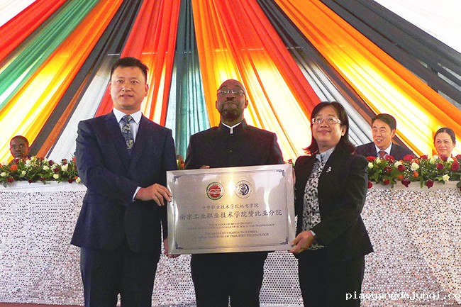 仪式上,由赞比亚高教部部长Brian Mushimba和中国教育部职成司二级巡视员郁洁共同为中赞职业技术学院等七家分院授牌;由中国有色集团副总经理张晋军为中国有色集团赞比亚培训中心授牌;赞比亚铜带省省长Japhen Mwakalombe、高教部部长Brian Mushimba、中国有色集团副总经理张晋军和中国教育部职成司二级巡视员郁洁共同为中赞职业技术学院揭牌。至此,中赞职业技术学院正式成立。