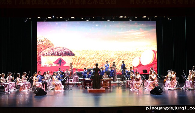 为展现中华优秀传统民族音乐文化魅力,筑牢浓厚校园文化氛围,献礼学校百年华诞,4月25日晚,我校百年校庆系列活动暨第十九届校园文化艺术节之高雅艺术进校园——“奋发建功新时代,百年风华正青春”南京大学民乐团专场音乐会在大学生创新发展中心礼堂精彩上演。校长谢永华教授、党委副书记苏小冬教授、南京大学团委负责同志及学校800余名师生共同欣赏了这场音乐盛宴。