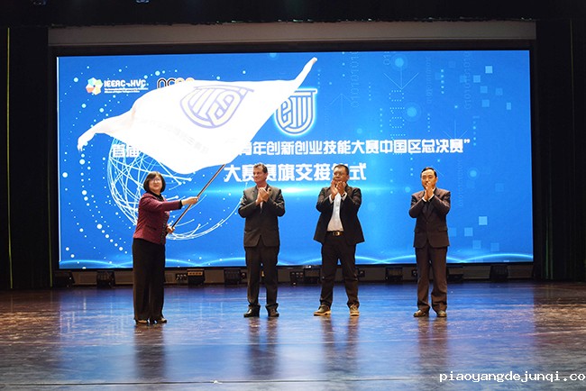 颁奖典礼最后举行了“大赛赛旗交接仪式。全国高职院校创新创业教育联盟理事长、我校党委书记吴学敏、NCEE执委会委员、中欧高级别会议官员 Chris Brown、 NCEE(China)首席执行官王啸宇、下一届大赛承办方北京财贸职业学院党委副书记杨禾共同进行了大赛赛旗交接仪式。