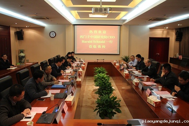 3月5日下午,西门子中国研究院CVC中国区CEO Mr. Harald Schnakl等一行5人来我校交流合作,校长谢永华、副校长崔新明、科技处、发展合作处、国际合作与交流处、机械工程学院等部门负责同志热情接待了来宾。
