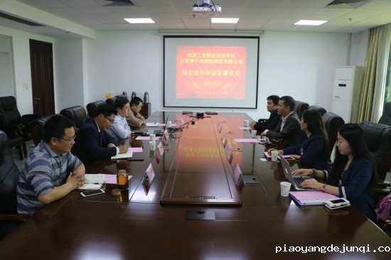 4月27日上午,江苏博子岛网络科技有限公司赵峥涞董事长一行来我校洽谈交流校企合作事宜。学校副校长崔新明、南京南工院科技园管理有限公司董事长兼总经理翟吉和、商务贸易学院副院长阮晓文、电子商务技术教学部主任谢吉刚出席了签约仪式。
