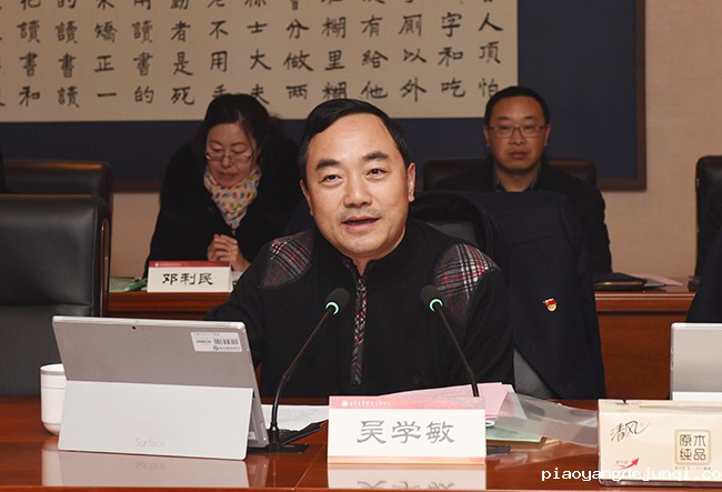 校党委吴学敏书记代表学校党委做工作汇报。他提出,围绕“立德树人”根本任务,加强和改进新形势下思想政治工作,是我们坚持社会主义办学方向,强化高校党委责任意识,培养对中国特色社会主义道路、理论、制度和文化高度自信,具有“家国情怀”的高素质“双创型”技术技能精英人才,为中国特色社会主义建设培养“大国工匠”的道路指引;也是学校立足新时代,不忘职教先人教育救国之初心,以百年职教“敬业乐群”校训精神为依托,构建全过程、多维度、全覆盖“大思政”格局的特色之路。在汇报中,吴书记着重介绍自全国、全省高校思想政治工作会议召开以来,我校党委把加强和改进新形势下思想政治工作作为一项事关全局的战略任务,建立了以明确“一个主体”、体现“两个全面”、发挥“三支队伍”作用、加强“四个建设”、防范“五个不能”为核心内容的思政工作体系,形成了党委统一领导,党政职能部门履行职责、齐抓共管、协同推进,覆盖全体师生的思政工作格局。