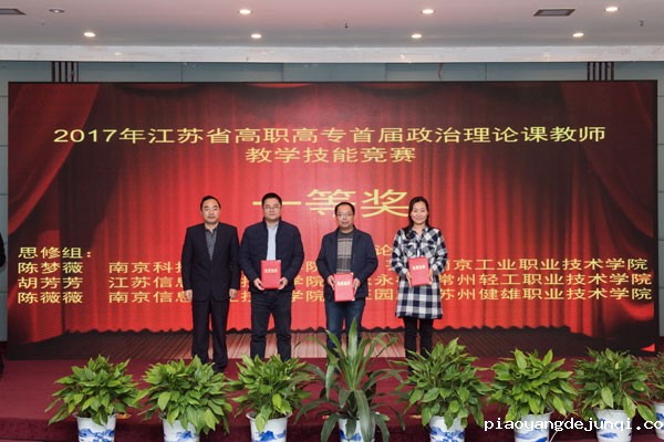 为深入贯彻全国、全省高校思想政治教育工作会议精神,落实教育部思政课教学质量年的要求,充分发挥思想政治理论课主渠道的作用,全面提升我省思政课教师的教学能力和水平,增强大学生的获得感,2017年11月25日,江苏省高职高专院校思想政治理论课教师教学技能竞赛决赛在南京工业职业技术学院进行,今天进入决赛的18位选手是从全省89所高职高专院校共550名选手中遴先产生的,18位选手经过课件比赛和现场讲授两个阶段激烈的竞争与角逐,产生出特等奖4名,一等奖6名,二等奖8名,南京工业职业技术学院马克思主义学院的朱芸教师获得了一等奖的好成绩。