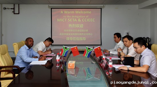 国际教育学院院长赵秋代表项目管理团队,对南非媒体信息通信培训署和交流中心领导的来访表示热烈欢迎。国际教育学院副院长张平介绍了合作项目总体运行情况和云计算及机电一体化两个专业南非留学生情况。