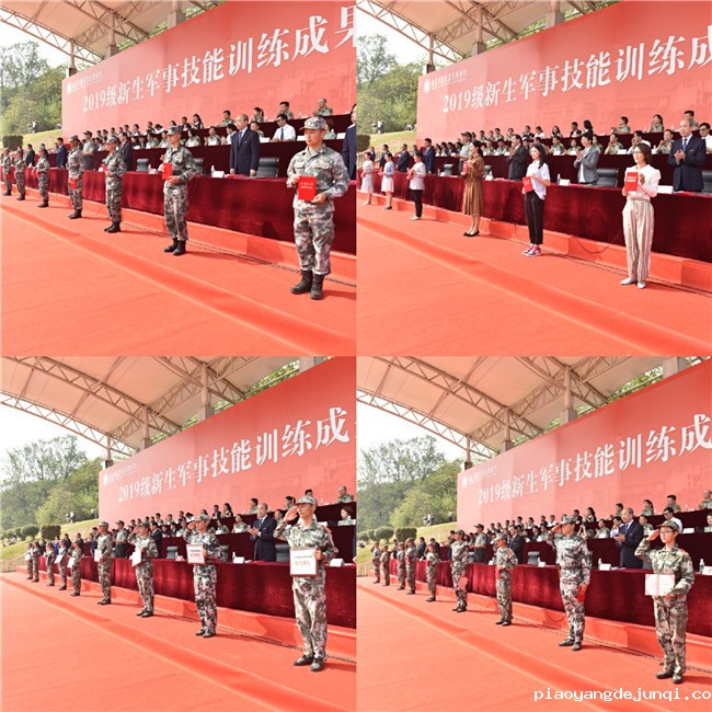 军训成果汇报大会上,党委副书记、校长谢永华代表学校向承训部队解放军73211部队政委崔西强赠送了“威武之师展军威,军校协作育英才”的锦旗。党委委员、副校长霍雄飞宣读了军训先进集体和个人的表彰决定。学校领导和嘉宾为获奖的“军训先进连队”、“军训先进个人”、“优秀教官”、“优秀教导员”等集体和个人代表颁奖。