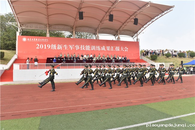 2019级新生军训成果汇报大会在全体师生《歌唱祖国》的嘹亮歌声中圆满结束。