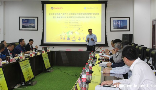 为贯彻落实《国家职业教育改革实施方案》,积极推动学历证书+若干职业技能等级证书制度,10月11日,1+X工业机器人操作与运维职业技能等级标准推广研讨会暨发那科技术学院及汽车行业用人需求研讨会于南京工业职业技术学院举办。本次会议由上海发那科机器人有限公司总经理何烱主持,南京工业职业技术学院总督学卢兵教授出席会议,上海发那科机器人有限公司戴琦部长、北京新奥时代科技有限责任公司谭志彬总经理、上汽大通汽车有限公司李伟东资深工程师、以及来自苏州职业大学、常州信息职业技术学院、扬州职业大学等68位企业代表及知名专家参加此次研讨会。