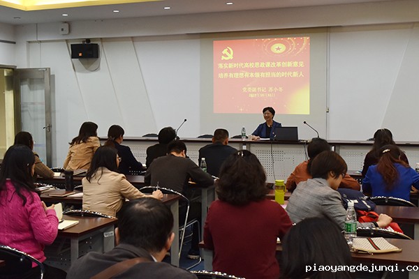 根据学校“不忘初心、牢记使命”主题教育的部署要求和具体工作安排,10月31日下午,党委副书记苏小冬在敬业楼315会议室讲授了题为《落实新时代高校思政课改革创新意见,培养有理想有本领有担当的时代新人》专题党课。参加党课学习的有党委组织部、党委统战部、党委宣传部、审计处、工会、离退休工作处、关工委秘书处、实验室与资产管理处、天管办、高教所、艺术设计学院、马克思主义学院、工程技术实训中心的党员同志共70余名。