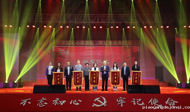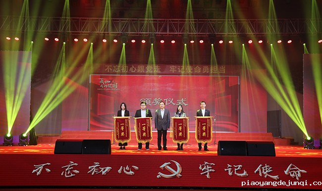 精彩的表演后,进入本次青年歌会的颁奖环节。苏小冬,于林惠,霍雄飞,高宏彦,刘畅共同为青年歌会的先进个人代表颁发了荣誉证书,同时为获得本次比赛二等奖的电气工程学院、艺术设计学院、商务贸易学院、国际教育学院和交通工程学院颁发了锦旗;吴学敏为获得一等奖的机械工程学院、经济管理学院、计算机与软件学院、航空工程学院颁发锦旗。