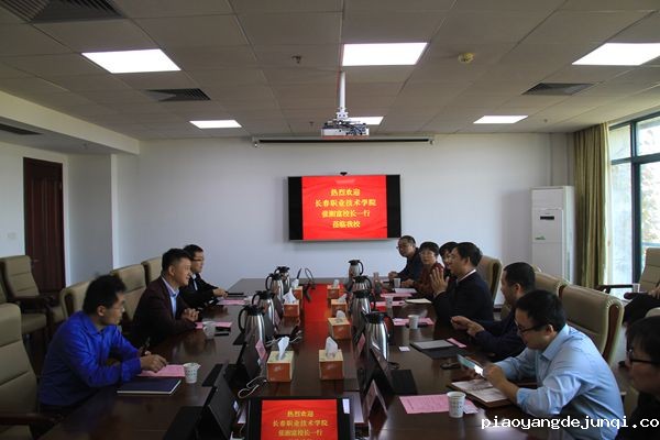 11月6日上午,长春职业技术学院党委书记张湘富同志率领相关部门负责同志来我校进行工作交流。我校党委副书记、校长谢永华,教务处、计算机与软件学院等部门负责同志接待了来宾。