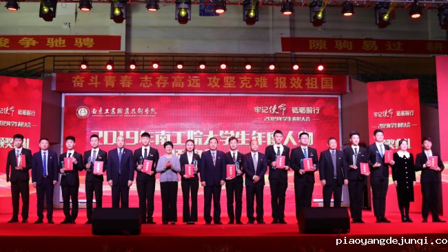 “2019南工院大学生年度人物”颁奖仪式上,霍雄飞宣读了获奖名单并向同学们表示热烈的祝贺。“勇立时代潮头牢记复兴使命—2019南工院大学生年度人物事迹展播”视频展现了十一位南工院学子在创新创业、技术技能、志愿服务、自强不息、全面发展等领域奋勇拼搏、砥砺前行的先进事迹,引起了在场同学的共鸣,博得了一阵热烈的掌声和喝彩。吴学敏、苏小冬、于林惠、霍雄飞、朱建国、高宏彦、刘畅为11位年度人物颁发奖杯和证书。