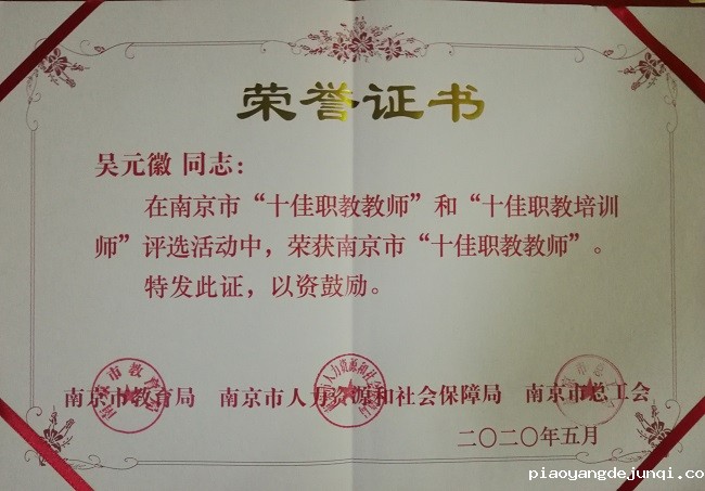 日前,由南京市教育局、市人社局、市总工会、市职教联合会面向全市首次开展“十佳职教教师”和“十佳职教培训师”评选活动,经个人申报和单位推荐、网络投票、专家遴选等环节,最终将评选出10名“十佳职教教师”以及10名“十佳职教教师”入围奖。我校机械工程学院吴元徽老师荣获“十佳职教教师”、谈慧老师荣获“十佳职教教师”入围奖;我校聘任的产业教授刘思峰、技能大师孙景南也获得此项荣誉。获“十佳职教教师”前3名的老师,由南京市总工会授予“南京市五一劳动奖章”,吴元徽老师同时获“南京市五一劳动奖章”荣誉称号。