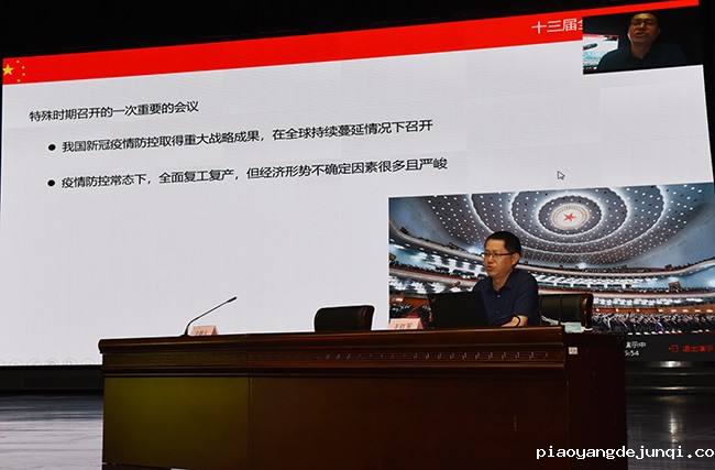 王红军在报告中从四个方面系统传达了本次“两会”精神。一是政府工作报告。他详细解读了今年政府工作报告的特殊性,尤其是无GDP增速目标,体现了国家在疫情防控形势下及时调整目标,集中精力抓好“六稳”、“六保”的决心。二是《民法典》。《民法典》是社会生活的百科全书,对政治经济社会各领域发展将产生重要影响。他认为,《民法典》体现了我国社会主义性质、符合人民利益和愿望、顺应时代发展要求,体现对生命健康、财产安全、交易便利、生活幸福、人格尊严等各方面权利平等保护,具有鲜明中国特色、实践特色和时代特色。三是关于建立健全香港特别行政区维护国家安全的法律制度和执行机制的决定。他从法律依据、背景、内容等方面充分解读了这项决定的意义,健全香港特别行政区维护国家安全的法律制度势在必行。四是解读习近平总书记参加内蒙古、湖北、解放军和武警部队代表团审议,看望参加全国政协会议的经济界委员发表的重要讲话。习近平总书记的一系列重要讲话,统揽全局,把握大势,对坚持以人民为中心的发展思想,加强疾病预防控制体系改革、公共卫生体系建设和国防军队建设,着眼高水平全面建成小康社会、开启现代化建设新征程等方面的工作做出重要部署。