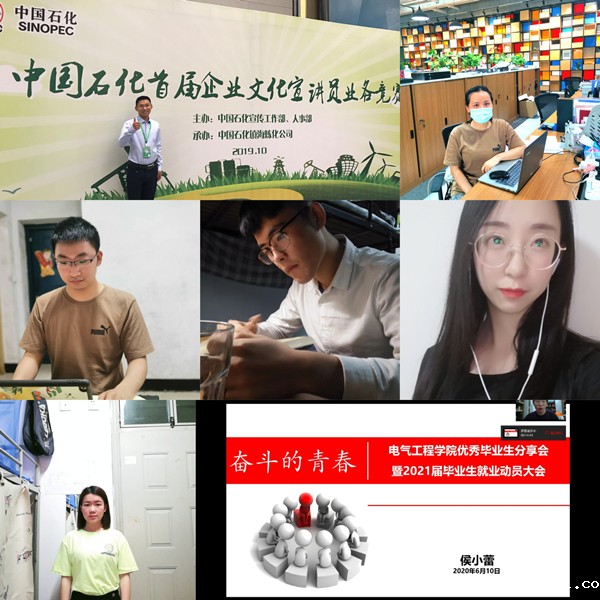 6月11日晚,电气工程学院在线上举行了“奋斗的青春之优秀毕业生交流分享会”,全体2018级学生和部分2019级学生参加了此次活动。分享会为2021届学生展示分析了2019届毕业生的升学就业情况,解读了中共中央办公厅国务院办公厅印发的《关于进一步引导和鼓励高校毕业生到基层工作的意见》中的各项相关政策,并邀请到六位电气工程学院2019届优秀毕业生为同学们分享他们的奋斗故事。