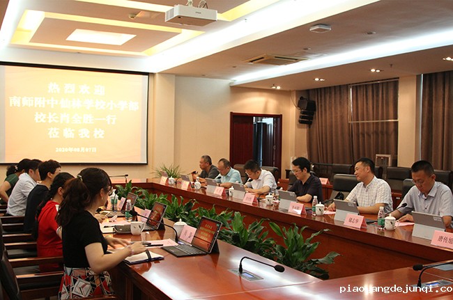 8月7日上午,我校与南师附中仙林学校小学部合作共建交流座谈会在行政楼辅楼一楼会议室举行。南师附中仙林学校小学部校长肖全胜,副校长朱永刚、储志华、蒋浩,校办主任曲文双,文化景观设计专家赵斌等一行及我校校领导苏小冬出席座谈会,学校党政办、发规办、人事处、工会等部门负责人参加了本次会议。会议由苏小冬主持。
