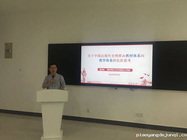 翟洪峰报告的题目是《关于中国近现代史纲要由教材体系向教学体系转化的思考》。他从教材体系和教学体系的区别与联系,南京师范大学思政课围绕“转化”开展的教学改革的历程和取得的成果,专题化教学的优势、成效、基本原则及存在的问题、改进和完善等方面给老师们作了精彩的报告。这次报告,对马克思主义学院教师的专题化教学能力、教学水平及课堂整体效果起到了良好的促进作用,是加强深化思政课建设,牢固树立思政课是落实立德树人关键课程的重要举措。