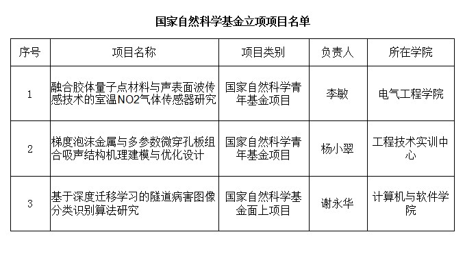 9月18日,国家自然科学基金委公布了2020年度国家自然科学基金立项名单,我校荣获3项,其中面上项目1项、青年基金项目2项。