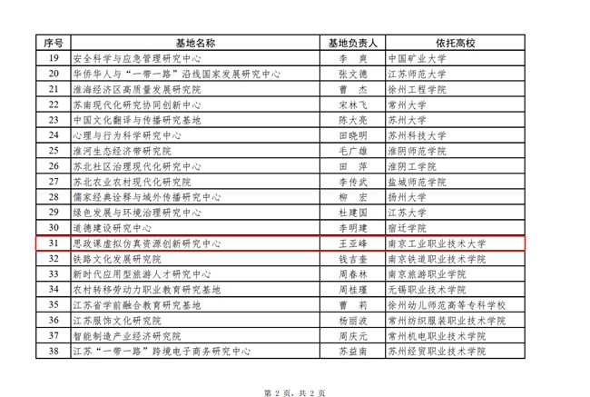 日前,江苏省教育厅公布了2020年江苏高校哲学社会科学重点研究基地和优秀创新团队名单。我校马克思主义学院院长王亚峰领衔申报的“思政课虚拟仿真资源创新研究中心”获批江苏高校哲学社会科学重点研究基地。