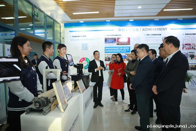 在国家双创示范基地和产教融合基地,调研组参观了学校大学生科技创新作品展,听取了大学生科创社团科创作品的介绍,对我校双创教育体系及学生创新创业成果表示赞许。