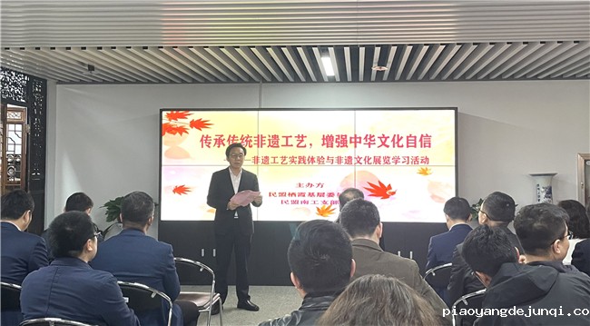 马成荣在致辞中向与会人员介绍了学校发展历程,他指出,学校高度重视非遗传承工作,充分发挥其在人才培养中的教育价值,积极探索高职教育与非遗传承的结合方式,推动非遗传承与学校专业和文化建设全方位、全学段、全过程融合。他认为,非物质文化遗产是中华优秀传统文化的结晶,是中国的传家宝,承载着劳动精神、工匠精神,对传递民族文化、凝聚民族认同、重塑民族精神、增强文化自信具有重要意义。他表示,学校将不断加强与民盟市委、栖霞区的合作共建,携手推进非遗传承与发展。