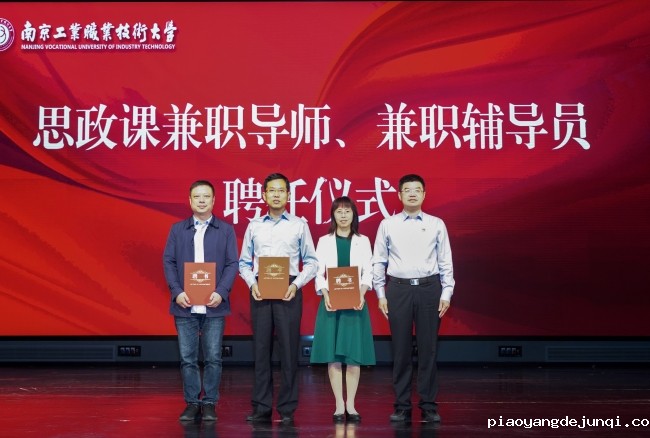 思政课兼职导师、兼职辅导员聘任仪式上,王伟为程军荣、沙夕兰、胡胜3位劳模工匠颁发聘书,聘任他们为思政课兼职导师、兼职辅导员。