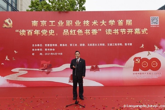 活动现场,校党委书记吴学敏发表了开幕式致辞。他指出,作为以传承和发扬黄炎培职教思想为使命的本科职业院校,营造校园内良好读书风气、浓郁阅读氛围是南工文化建设的重要内容。本次读书节活动以庆祝中国共产党成立100周年为契机,与党史学习教育紧密结合,意在进一步强化师生使命担当,增强干事创业的能力本领,争取用实际行动做传承红色基因的“有心人”。