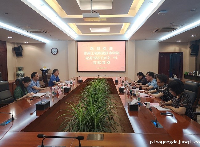 6月17日上午,常州工程职业技术学院党委书记王光文一行来我校考察调研。党委书记吴学敏、党委常委、党委组织部、统战部部长高宏彦,以及党委教师工作部、人事处等部门负责同志在行政楼辅楼一楼会议室接待了来宾。