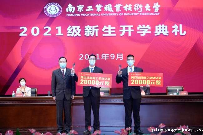 校党委副书记马成荣宣读了2021年“黄炎培科创之星”表彰决定。航空工程学院飞机1913班王振东、机械工程学院机设1911班苗威野、计算机与软件学院软件1911班房澜三位同学获此殊荣。典礼上,吴学敏书记为获奖者颁奖。
