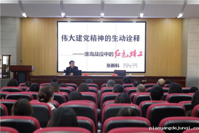 报告会上,张新科书记以《伟大建党精神的生动诠释——淮海战役中的红色特工》为主题,从淮海战役的“正面战场”“支前民众”和“隐蔽战线”三个方面,介绍了淮海战役的历史背景和主要事件,重温了以郭汝瑰、刘君湘、钱树岩、萧德宣等为代表的红色特工们可歌可泣的英雄事迹。他通过讲述这些隐蔽战士们生动形象的革命故事,将淮海战役的历史画卷徐徐展开,彰显了中国共产党领导的人民军队取得淮海战役伟大胜利不仅是民心所向,更是历史的必然。红色特工们坚定的革命信仰深深地感动着现场的每一位师生。师生代表们表示,此次报告触人灵魂、引人深思、催人奋进,让大家深深体会到正是在山河破碎、民不聊生之时,中国共产党乘着一叶红船、载着革命星火,于风雨飘摇中带给中国人民和中华民族以生的希望。