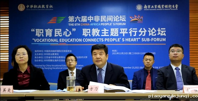 方乃纯指出,中华职教社作为职教特征鲜明的全国性职业教育团体,自成立以来,为推进职业教育发展进行了不懈的努力,对职业教育的改革和发展不断作出贡献。希望通过此次论坛搭建起中非两地在职业教育领域的沟通合作平台,建立起未来交流合作机制,通过职业教育的交流交往,实现合作共赢,通过技术技能培训学习,实现就业创业,更好地促进中非两国人民民心相通。方乃纯在会上发布“职育民心”倡议,他提出,在未来三年,依托中非职教合作联盟,在职教课程开放、奖学金交流生、师资培训项目、技术技能交流、共建合作专业、打造鲁班工坊等各个方面开展中非交流合作。中非职教合作联盟将广泛吸纳各类有志于中非职教交流的机构入盟,收集中非友好交流故事,凝练中非合作有益经验,探寻可复制的合作模式,以职业技术教育交流为桥梁纽带,赓续中非传统友谊。