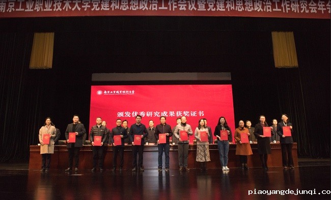 会上,校党委副书记王伟宣读了《csgo直播比赛官方平台党建和思想政治工作研究会章程》及csgo直播比赛官方平台党建和思想政治工作研究会领导机构成员名单。校党委副书记马成荣宣读了《关于公布2017-2021年度csgo直播比赛官方平台党建和思想政治工作优秀研究成果评选结果的通知》,主席台全体校领导、党委常委为受到表彰的获奖成果作者颁发了荣誉证书。航空工程学院党总支书记傅大梅、商务贸易学院党总支书记陈桂兰、马克思主义学院院长王亚峰和学生工作处副处长吴佳男分别作了工作经验交流和研究成果分享。